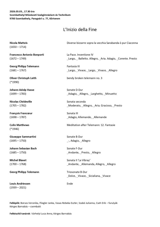 AktuálisKoncertekFurulyások koncertje2026.03.02.by adminFurulyásaink adnak koncertet a Körteremben kedden 17.30-tól, várunk mindenkit szeretettel.A koncert egyúttal a csütörtök-pénteki országos furulyaverseny főpróbája lesz és sokszínű műsort ígér.